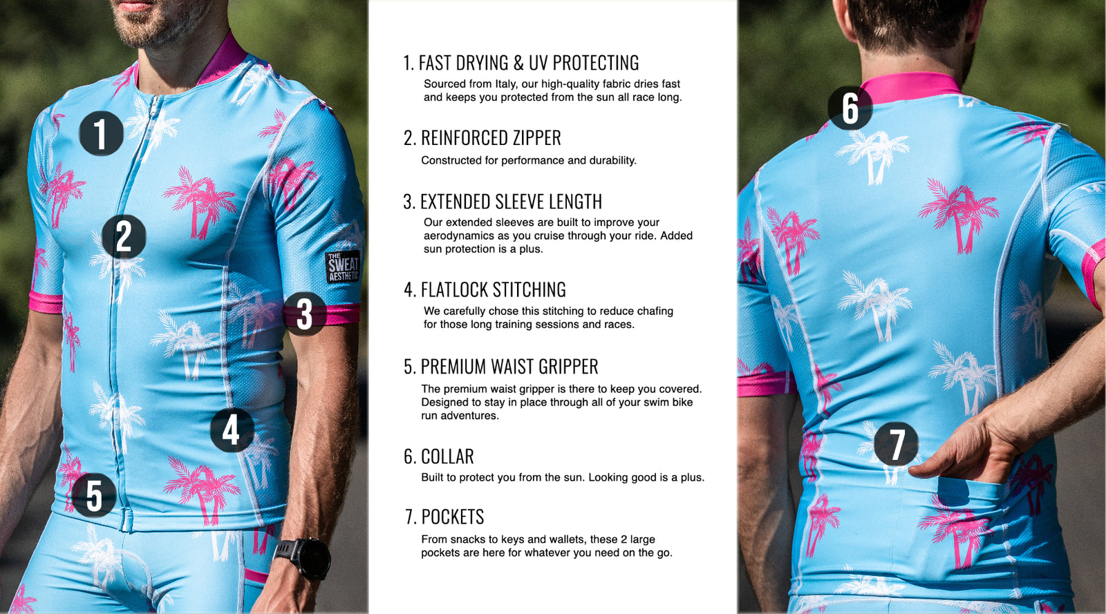 Time flies on the Island! The Island Time series signature men's Triathlon top is fast drying, long lasting, and will keep you looking awesome during all your swim bike run adventures. Features include:
